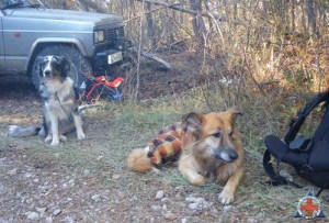 V nedeljo se na startu trojica Krimovskih bab (Vera, Jasna in jaz) najprej pofotkamo in seveda veselo počvekamo. »Baza javi se. Tea Bašin iz KD Krim sem pripravljena in čakam na dovoljenje za start,« sem po postaji poklicala Vlada Gerbca. »Poglej na uro in čez 4 minute pojdi,« se je glasil odgovor. »Sprejeto.« Ajka sem vzela iz avta, ga pripravila in potem sva se odpravila na 2-kilometrski »sprehod« po gozdu. Prehodila sva prvo polovico poti, se »počekirala« na vmesni postaji, kjer sva dobila vodo in sladico, in nadaljevala najin »sprehod«. Psa sem večji del poti samo opazovala in mu občasno pomagala z »dajanjem idej«, kam lahko še pogleda. Kmalu se je moja »morte bianca« (bela smrt) (Ajkovo krstno ime, ki so mu ga dali moji dobri prijatelji) iz lažjega drnca pognala v tek in zavila v grmovje. »O! Ne mi rečt, da ga ima!« sem si veselo rekla na glas in takrat je že lajal.